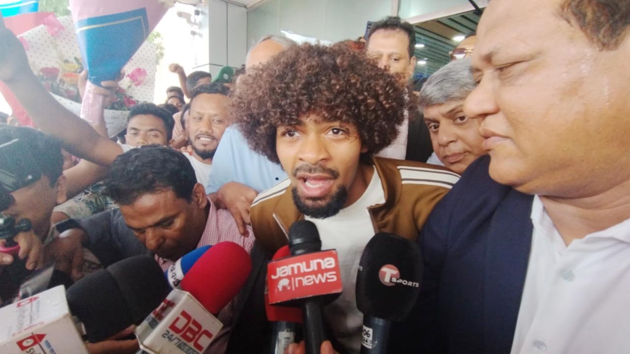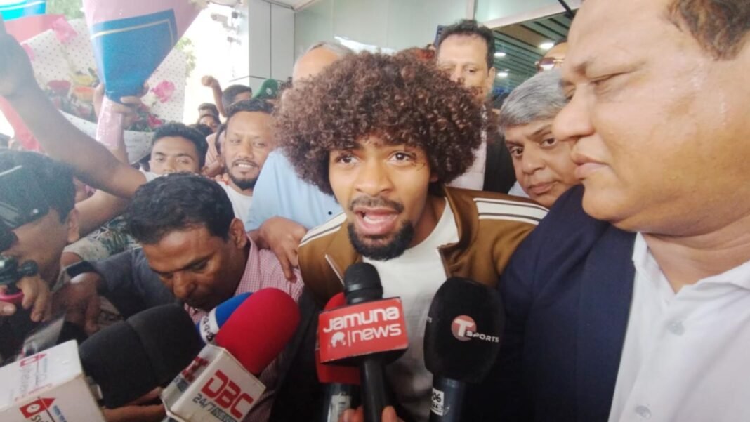 বাংলাদেশ জাতীয় ফুটবল দলের সদস্য হিসেবে দেশে ফিরে এসেছেন হামজা চৌধুরী। সিলেট ওসমানী আন্তর্জাতিক বিমানবন্দরে পা রেখেই তিনি আত্মবিশ্বাসী মনোভাব প্রকাশ করেন।